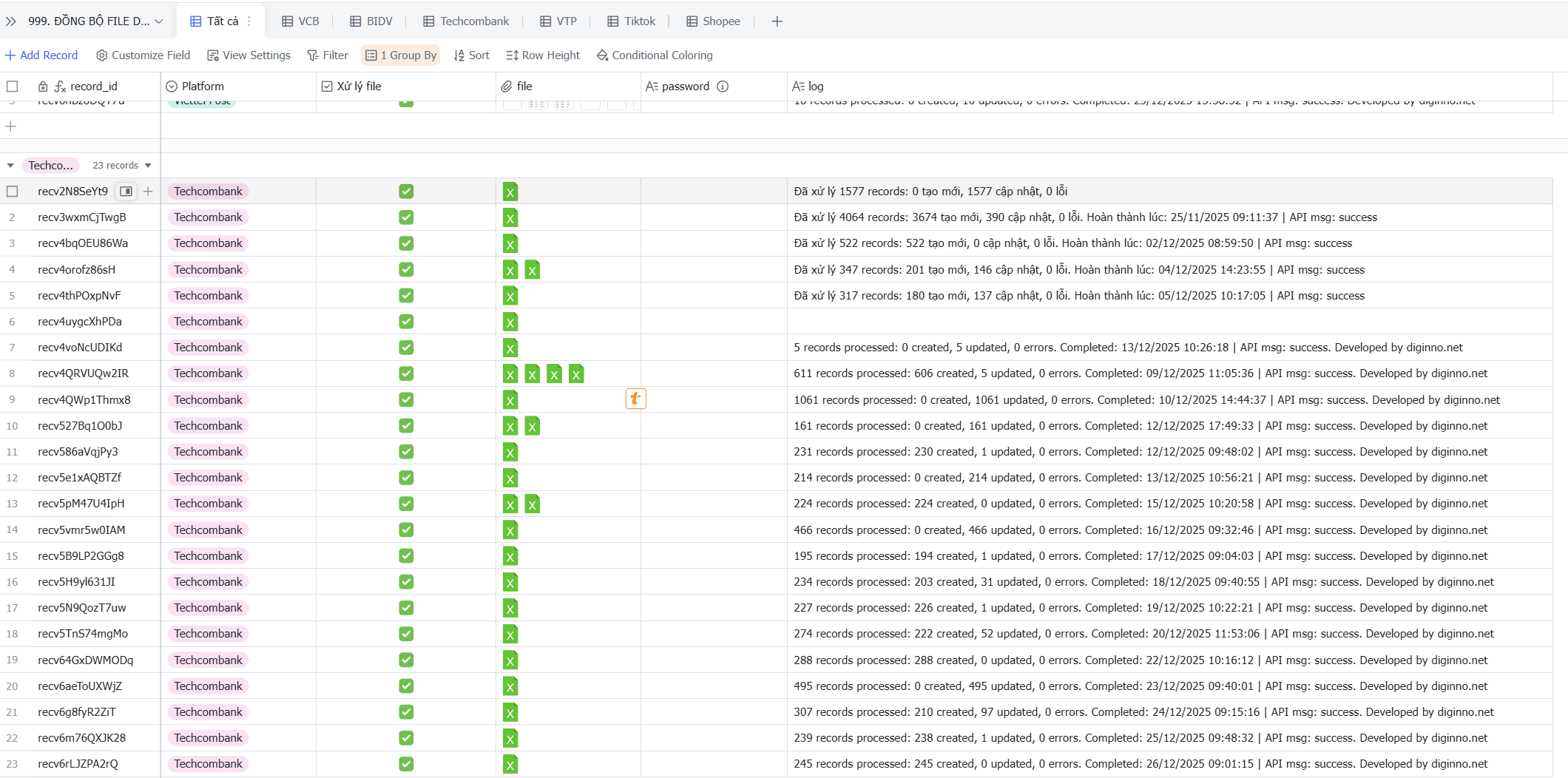 - Upload lên Lark Base qua giao diện đã cấu hình sẵn